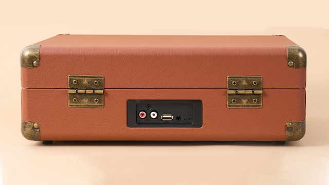 All-in-one portable design with genuine leather suitcase, auto-stop function, and simple controls for authentic sound.